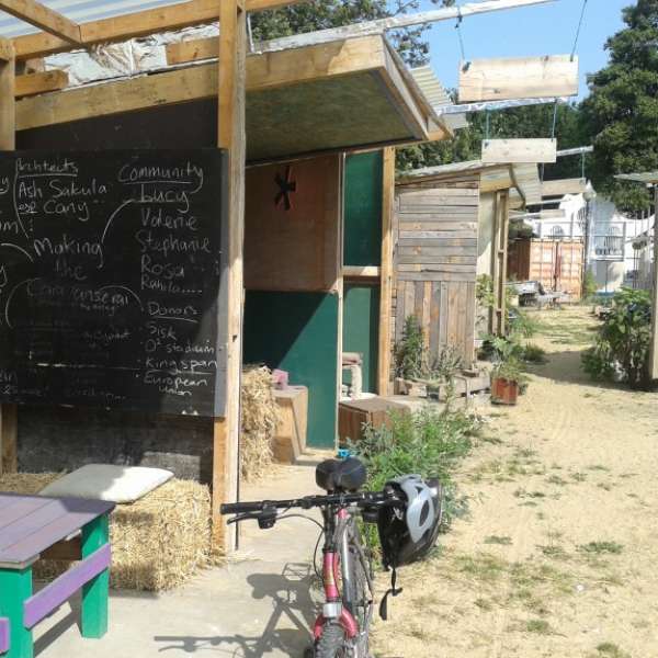 Canning Town Caravanserai http://caravanserai.org.uk/ The on-site facilities of the Caravanserai were built over two years, with more than 50 volunteer trainees working alongside experienced tradespeople. Everything was constructed without prefabricated systems.