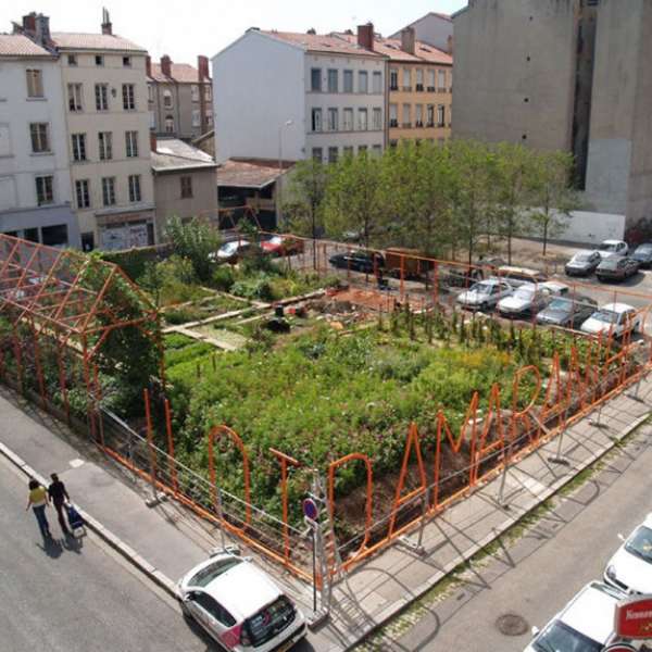 Îlot d’Amaranthes 2003 : Roger Talor gallery, as part of “urban policies” invites the artist Emmanuel Louisgrand to create a temporary garden at the corner of Sebastien Gryphe and Montesquieu street,