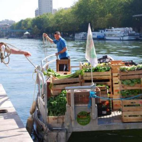 Le Marché sur l’eau – The Market on water http://www.marchesurleau.com The idea came out after several meetings with the actors in fluvial navigation (boatmen) and market gardeners near Paris, Claire-Emmanuelle Hue decides to use fluvial navigation as a type of shipping and sell local products.