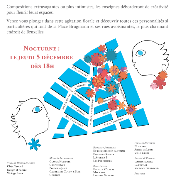 Brugmann en Fleurs & Spazio Nobile are pleased to invite you to discover more than 40 locations around Brugmann Square. All of them are highlighting their façade or shop window with a flower arrangement for these end of the year festivities.