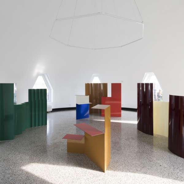 Belgian design duo Muller Van Severen showed four striking screens at Massimo De Carlo during Milan Design Week.